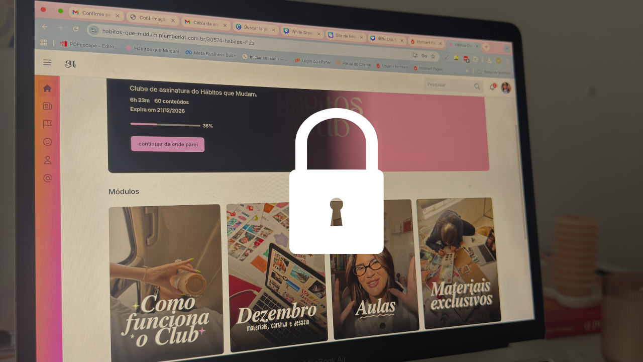 Clube de assinatura do Hábitos que Mudam, com imersões, aulas, materiais de apoio, mentorias, clube do livro e tudo que você precisa para tirar projetos do papel e construir a rotina ideal pra você.